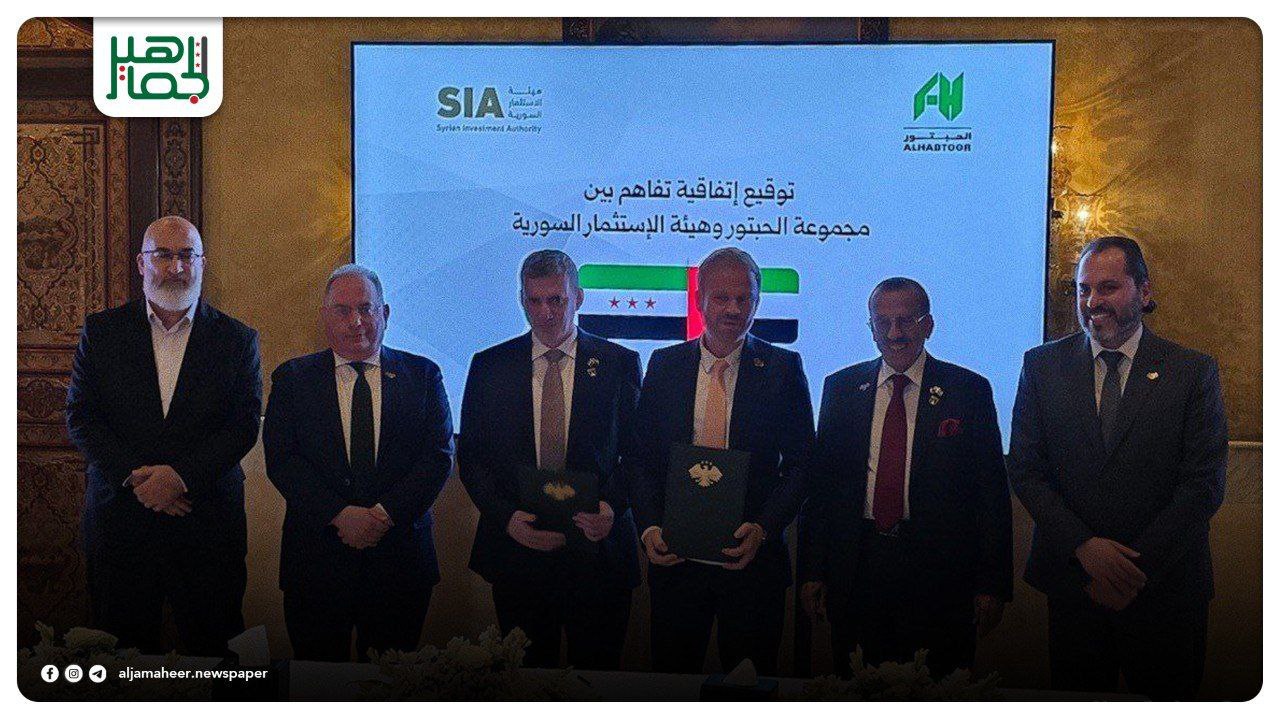 عن الإخبارية السورية: أحدث الأخبار On سبتمبر 11, 2025 Share 📌 توقيع اتفاقية تعاون بين هيئة الاستثمار ورجل الأعمال الإماراتي خلف الحبتور في فندق الفورسيزن بدمشق بحضور وزير المالية محمد يسر برنية 📌 توقيع الاتفاقية يأتي في إطار تعزيز الشراكة الاستثمارية وفتح آفاق جديدة للتعاون الاقتصادي بما يسهم في دعم مشاريع التنمية وتشجيع الاستثمارات المشتركة 🔔 اشترك بقناة التيليجرام: https://t.me/jamaheer 1 Share FacebookTwitterGoogle+ReddItWhatsAppPinterestالبريد الإلكتروني