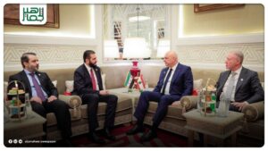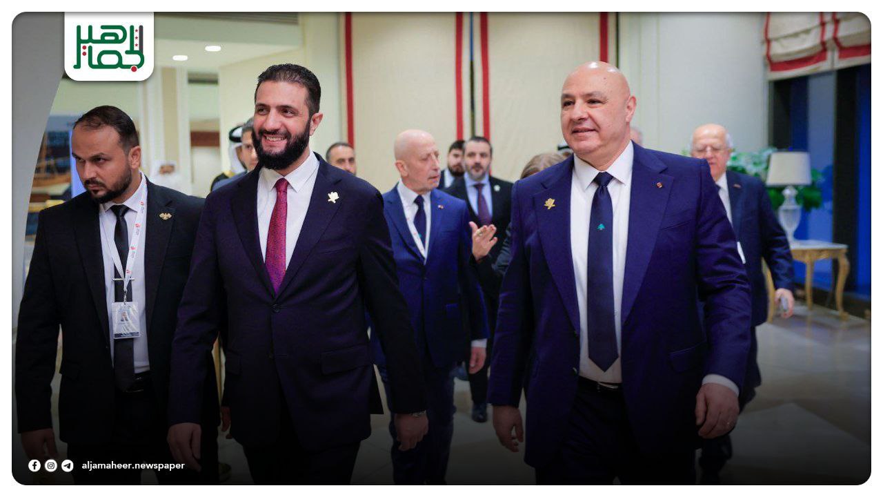 التقى رئيس الجمهورية العربية السورية أحمد الشرع، رئيس الجمهورية اللبنانية جوزيف عون، على هامش القمة العربية الإسلامية الطارئة المنعقدة في العاصمة القطرية الدوحة. غير مصنف On سبتمبر 15, 2025 Share Share FacebookTwitterGoogle+ReddItWhatsAppPinterestالبريد الإلكتروني