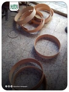 ويكشف الحرفي كرزون عن دقة وحرفية مراحل صناعة القطعة الواحدة، والتي تبدأ بلف شرائح الخشب باستخدام أداة خاصة تسمى “المطواية”، ثم تثبيتها لتأخذ شكل الصحن المدور، ليتم بعدها قص الغربال على مقاس الإطار وتثبيته بإحكام. وتستغرق هذه العملية برمتها ما لا يتجاوز الخمسة عشر دقيقة، لتخرج قطعة فنية بمنتهى الدقة والجمال.