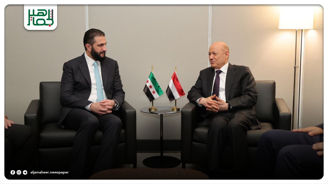 رئاسة الجمهورية: السيد الرئيس #أحمد_الشرع، يلتقي برئيس مجلس القيادة الرئاسي اليمني رشاد العليمي، بحضور وزير الخارجية والمغتربين أسعد الشيباني، وذلك على هامش أعمال الدورة الثمانين للجمعية العامة للأمم المتحدة في نيويورك. أحدث الأخبار On سبتمبر 24, 2025 Share Share FacebookTwitterGoogle+ReddItWhatsAppPinterestالبريد الإلكتروني