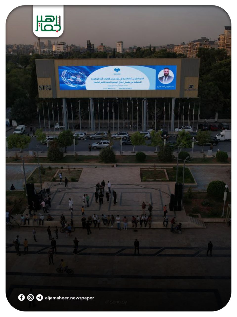 بدء توافد الأهالي إلى ساحة سعد الله الجابري في مدينة حلب استعداداً لعرض كلمة الرئيس أحمد الشرع أمام الجمعية العامة للأمم المتحدة محليات On سبتمبر 24, 2025 Share Share FacebookTwitterGoogle+ReddItWhatsAppPinterestالبريد الإلكتروني