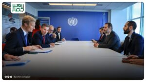 وزير الخارجية أسعد الشيباني يعقد لقاءً في مقر الأمم المتحدة بنيويورك مع ممثلي مكتب تنسيق الشؤون الإنسانية (OCHA)، وبرنامج الأغذية العالمي (WFP)، ومنظمة اليونسيف(UNICEF)، والمفوضية السامية لشؤون اللاجئين (UNHCR)، ومنظمة الصحة العالمية (WHO)، وذلك على هامش أعمال الدورة الثمانين للجمعية العامة للأمم المتحدة.