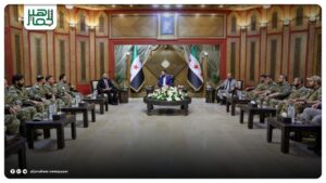 الرئيس أحمد الشرع يعقد جلسة مع قادة الفرق العسكرية 60 و 72 و 76 و 82 في محافظة حلب، للاطلاع على مستجدات الواقع الأمني والعسكري في المنطقة. أحدث الأخبارمحليات Last updated سبتمبر 27, 2025 Share Share FacebookTwitterGoogle+ReddItWhatsAppPinterestالبريد الإلكتروني