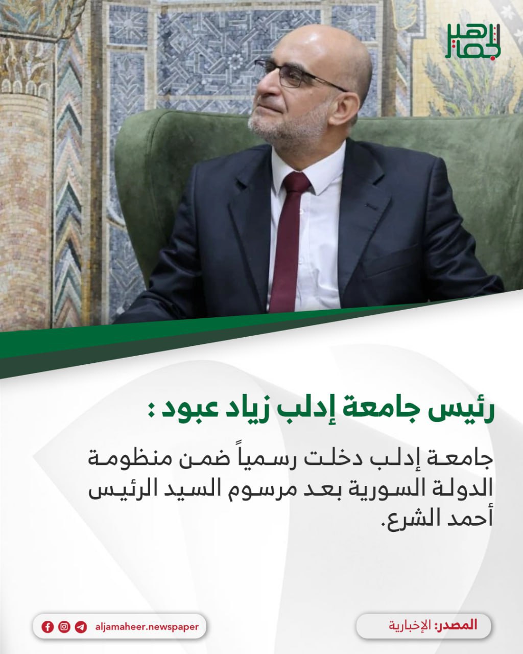 📌جامعة إدلب دخلت رسمياً ضمن منظومة الدولة السورية بعد مرسوم السيد الرئيس أحمد الشرع.