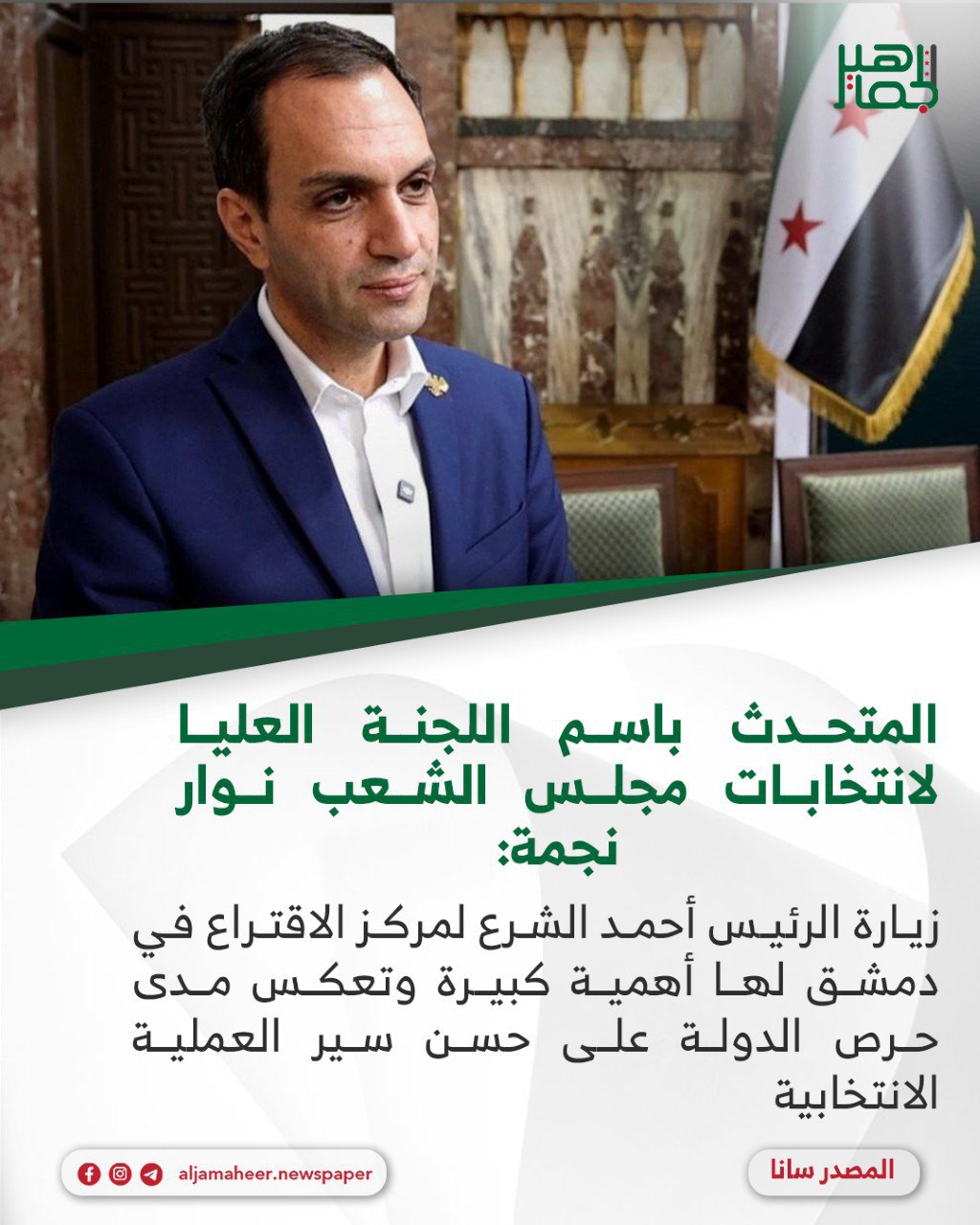 📌زيارة الرئيس #أحمد_الشرع لمركز الاقتراع في دمشق لها أهمية كبيرة وتعكس مدى حرص الدولة على حسن سير العملية الانتخابية.