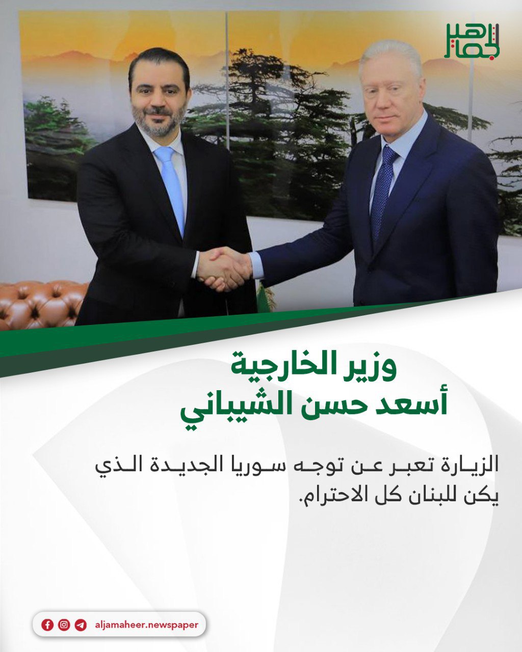وزير الخارجية أسعد حسن الشيباني في تصريح للصحفيين عقب لقائه نظيره اللبناني يوسف رجي في بيروت: محليات On أكتوبر 10, 2025 Share الزيارة تعبر عن توجه سورية الجديدة الذي يكن للبنان كل الاحترام. نعمل على إعادة العلاقات مع لبنان على أساس المصالح المتبادلة وسياسة حسن الجوار، ونريد تجاوز أخطاء الماضي بين سورية ولبنان والتي كنا نحن أيضاً ضحاياها. #صحيفة_الجماهير Share FacebookTwitterGoogle+ReddItWhatsAppPinterestالبريد الإلكتروني