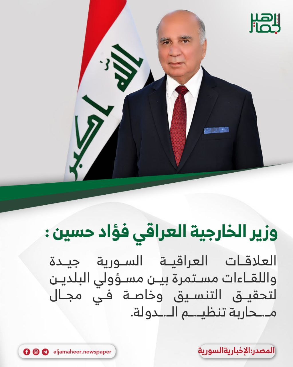 العلاقات العراقية السورية جيدة واللقاءات مستمرة بين مسؤولي البلدين لتحقيق التنسيق وخاصة في مجال مــ.ــحاربة تنظيــ.ــم الــ.ــدولة