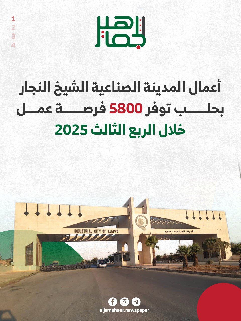 أعمال المدينة الصناعية بالشيخ نجار في حلب توفر 5800 فرصة عمل أحدث الأخبارمحليات On أكتوبر 11, 2025 Share Share FacebookTwitterGoogle+ReddItWhatsAppPinterestالبريد الإلكتروني