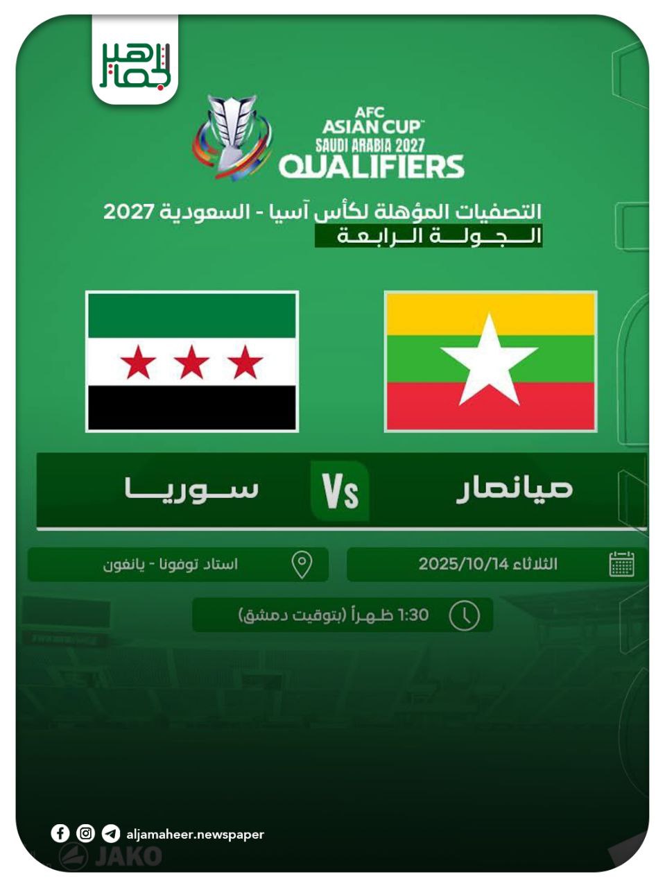 ⚽️ | منتخبنا الوطني الأول لكرة القدم يواجه نظيره منتخب ميانمار اليوم الثلاثاء ضمن الجولة الرابعة من التصفيات المؤهلة الى كأس آسيا 2027.