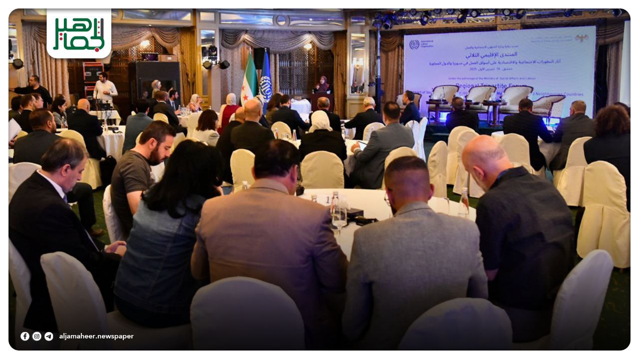 مراسل سانا: انطلاق المنتدى الإقليمي الثلاثي حول تأثير التطورات الاجتماعية والاقتصادية على أسواق العمل في سورية والدول المجاورة الذي تقيمه وزارة الشؤون الاجتماعية والعمل بالتعاون مع منظمة العمل الدولية وذلك في فندق الشام بدمشق. اقتصاد On أكتوبر 16, 2025 Share #صحيفة_الجماهير Share FacebookTwitterGoogle+ReddItWhatsAppPinterestالبريد الإلكتروني