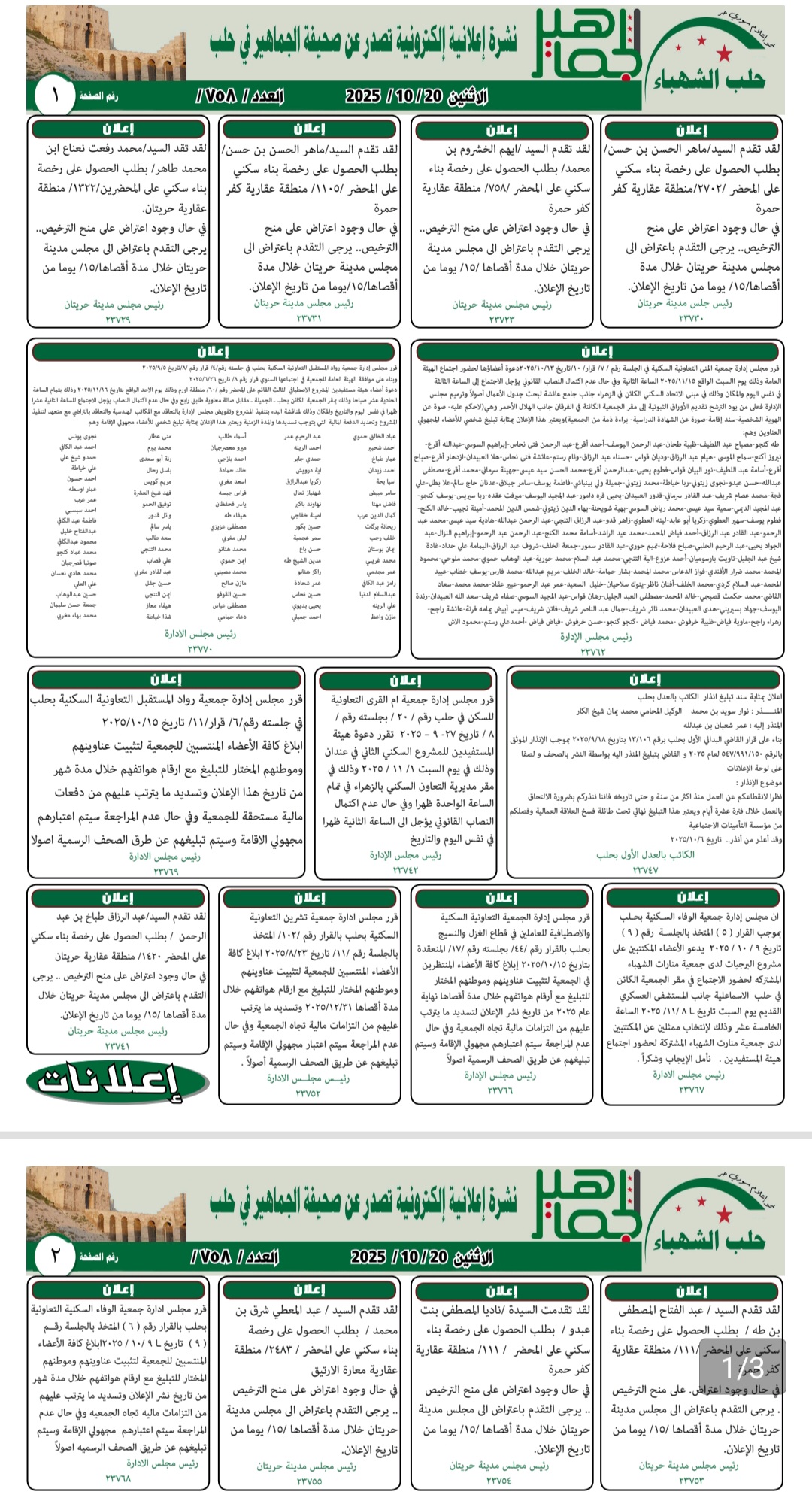 إعلانات الجماهير نشرة إعلانية إلكترونية العدد رقم 758 ليوم الأثنين 20-10-2025 أحدث الأخباراعلانات On أكتوبر 20, 2025 Share نشرة إعلانية إلكترونية العدد رقم 758 ليوم الاثنين 20-10-2025 Share FacebookTwitterGoogle+ReddItWhatsAppPinterestالبريد الإلكتروني