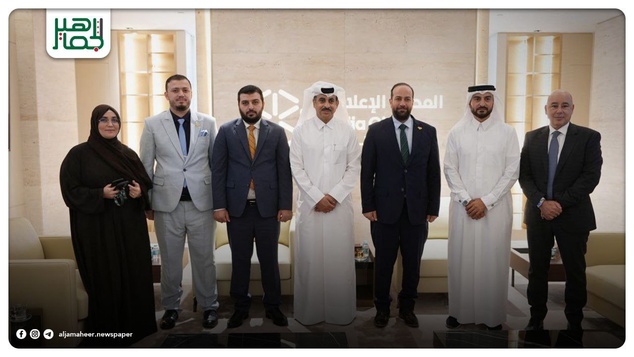 📌وزير الإعلام حمزة المصطفى برفقة معاون وزير الإعلام لشؤون الإعلام الرقمي والتطوير محمد طفران والمدير العام لمؤسسة الوحدة للصحافة والطباعة خالد خلف يزور المدينة الإعلامية في قطر.