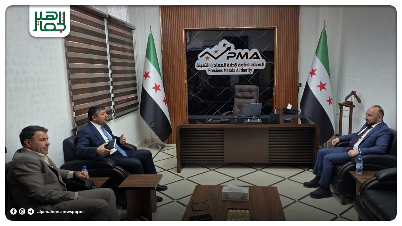 بحث مدير الهيئة العامة لإدارة المعادن الثمينة في سورية، مصعب الأسود، مع القائم بأعمال سفارة جمهورية أذربيجان في دمشق، ألنور شاه حسينوف، سبل التعاون الثنائي في مجال الذهب والمعادن الثمينة، وذلك خلال لقاء جمعهما في مقر الهيئة بدمشق.