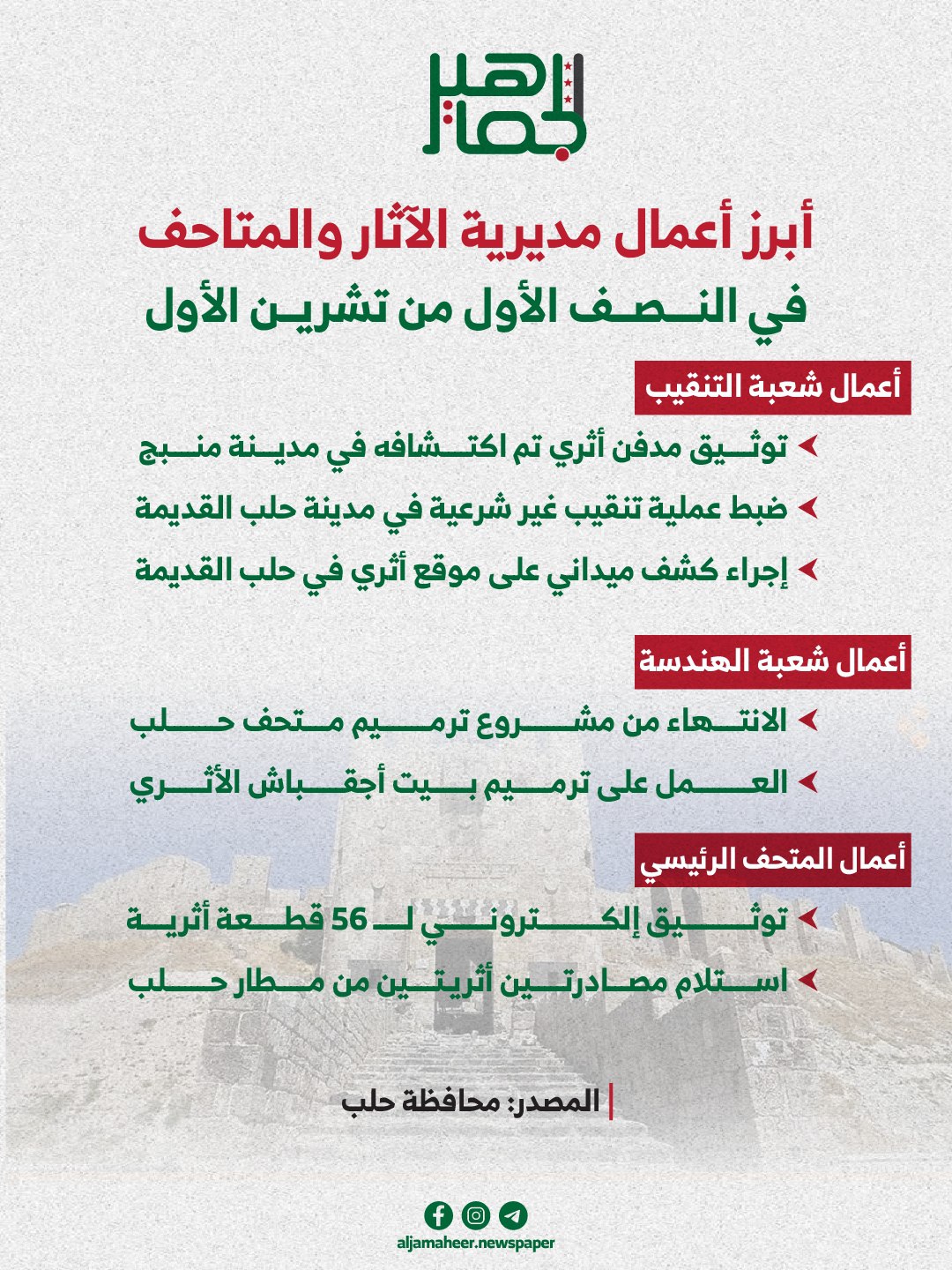 منها ترميم متحف حلب.. أبرز أعمال مديرية الآثار والمتاحف في النصف الأول من الشهر الحالي محليات On أكتوبر 27, 2025 Share Share FacebookTwitterGoogle+ReddItWhatsAppPinterestالبريد الإلكتروني