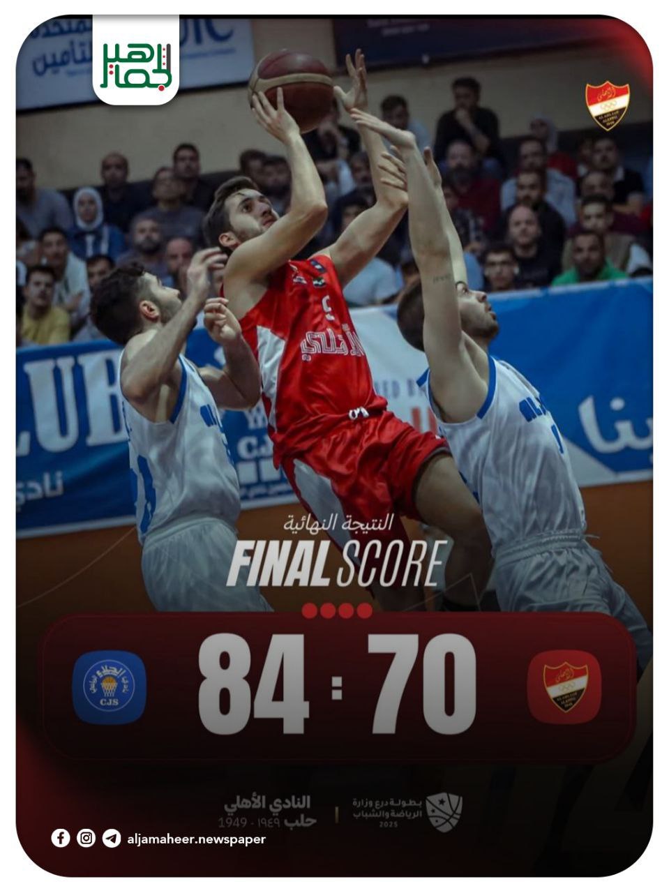 نهاية اللقاء الرابع من بطولة درع وزارة الرياضة والشباب في كرة السلة، بخسارة أهلي حلب من الشبيبة بنتيجة 84:70 . أحدث الأخباررياضة On أكتوبر 27, 2025 Share Share FacebookTwitterGoogle+ReddItWhatsAppPinterestالبريد الإلكتروني