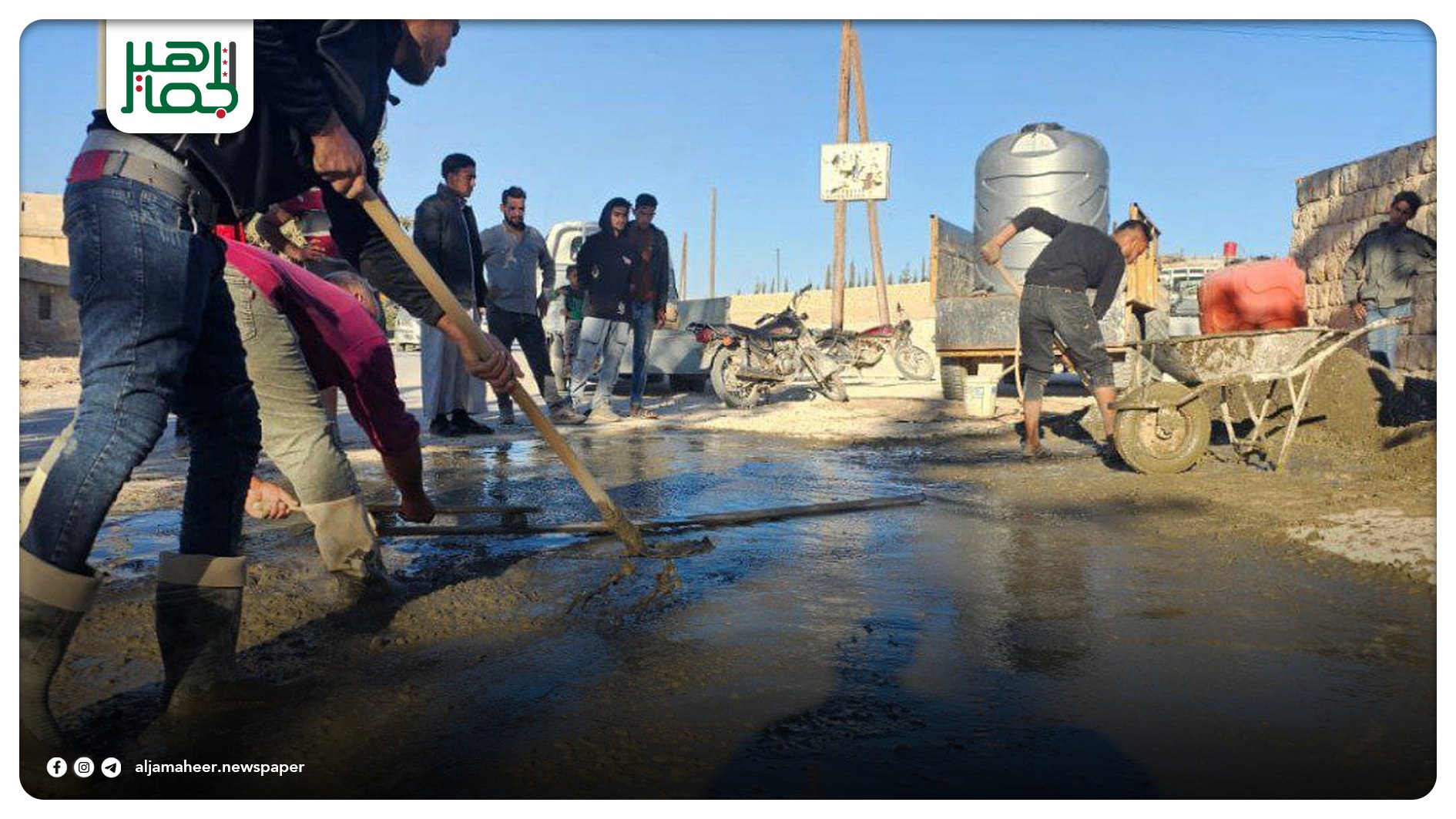 مبادرة نوعية من أبناء قرية تل الياسطي لإصلاح المدخل الشمالي الشرقي لمنبج بعد تضرره من الألغام.