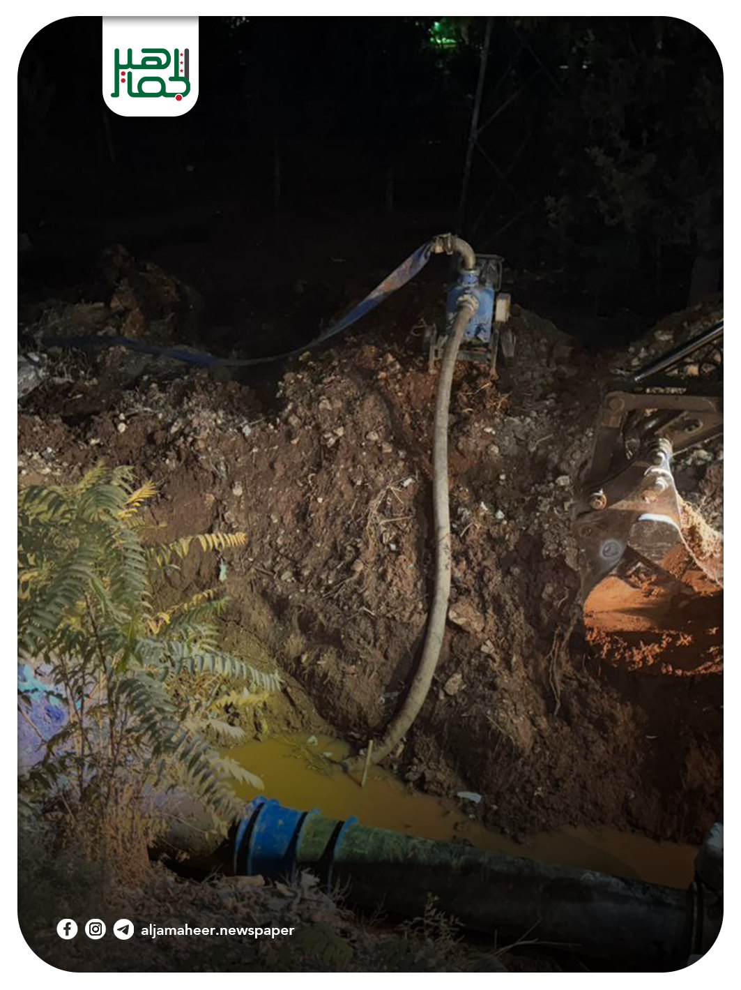 مؤسسة مياه حلب، بالتعاون مع برنامج الأمم المتحدة الإنمائي (UNDP)، تُعلن عن إنهاء صيانة الكسر في الخط الرئيسي بقطر 600 مم بمنطقة المحلق الغربي، بعد جهود مكثفة من فرق الصيانة.