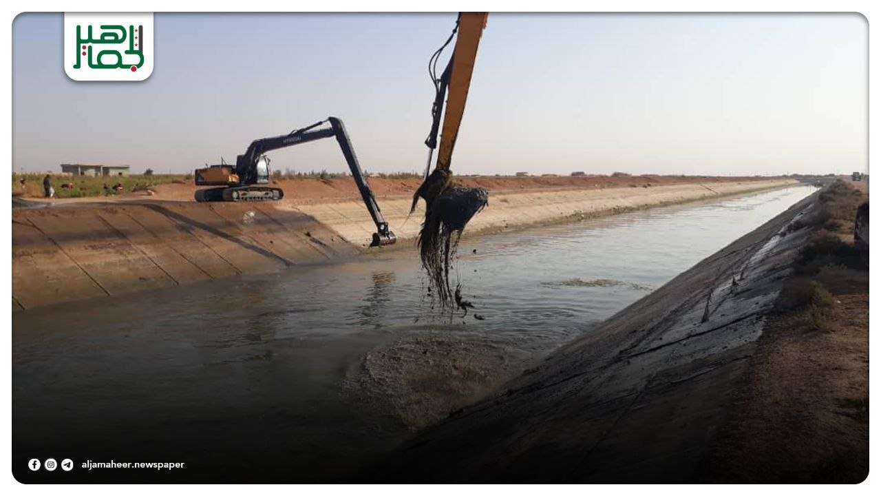 باشرت الشركة العامة للبناء والتعمير فرع حلب التابعة لوزارة الأشغال العامة والإسكان، تنفيذ أعمال تعزيل القناة الرئيسة في محافظة حلب من النباتات المائية ومواد الطمي.