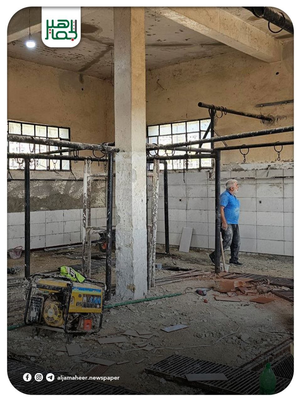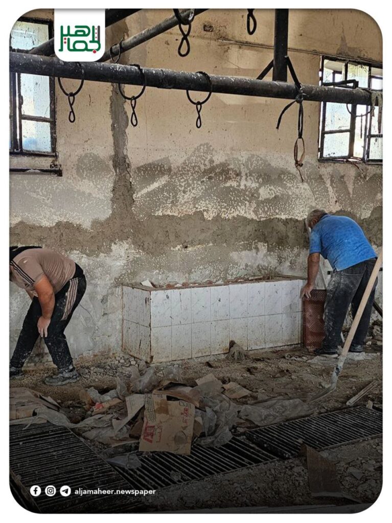إعادة تأهيل وترميم مسلخ اللحوم في مدينة جسر الشغور في محافظة إدلب، بهدف تحسين شروط العمل والنظافة العامة وضمان سلامة عمليات الذبح وفق المعايير الصحية المعتمدة محليات On نوفمبر 14, 2025 Share 🔔 اشترك بقناة التيليجرام: https://t.me/jamaheer Share FacebookTwitterGoogle+ReddItWhatsAppPinterestالبريد الإلكتروني