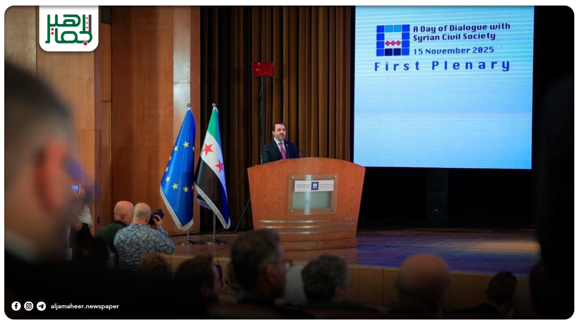 وزارة الخارجية: محليات On نوفمبر 15, 2025 Share وزير الخارجية أسعد حسن الشيباني يفتتح مؤتمر “يوم حوار مع المجتمع المدني السوري”، تحت شعار خطوة أولى نحو حوار منظم، لإطلاق شراكة بين الجمهورية العربية السورية والاتحاد الأوروبي. #صحيفة_الجماهير Share FacebookTwitterGoogle+ReddItWhatsAppPinterestالبريد الإلكتروني