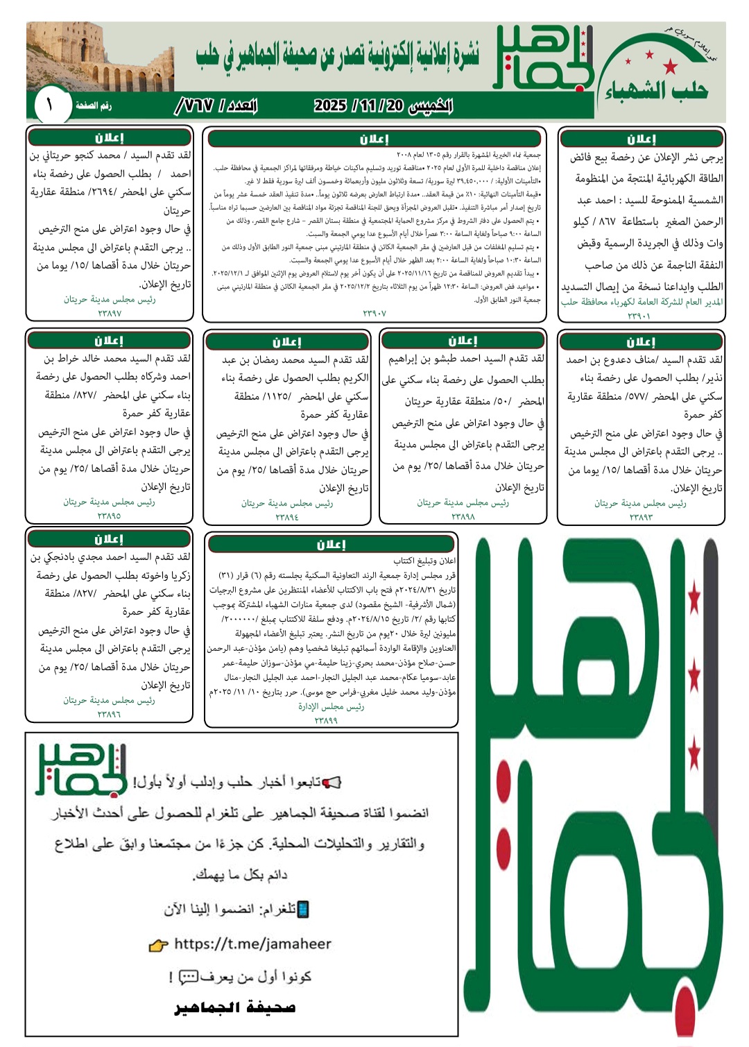 نشرة إعلانية إلكترونية العدد رقم 767 ليوم الخميس 20– 11–2025. أحدث الأخباراعلانات On نوفمبر 20, 2025 Share نشرة إعلانية إلكترونية العدد رقم 767 ليوم الخميس 20– 11–2025 Share FacebookTwitterGoogle+ReddItWhatsAppPinterestالبريد الإلكتروني