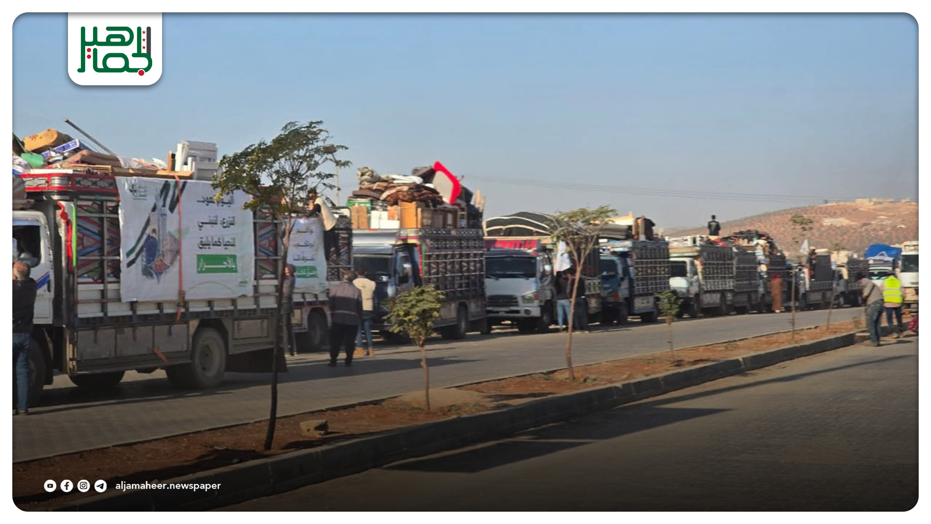 تم تسيير قافلة من 40 سيارة “أنتر” و(10) باصات مُكيّفة لنقل أثاث وأفراد 40 أسرة مُهجٌرة في مدينة عفرين إلى منازلهم بريف دمشق.
