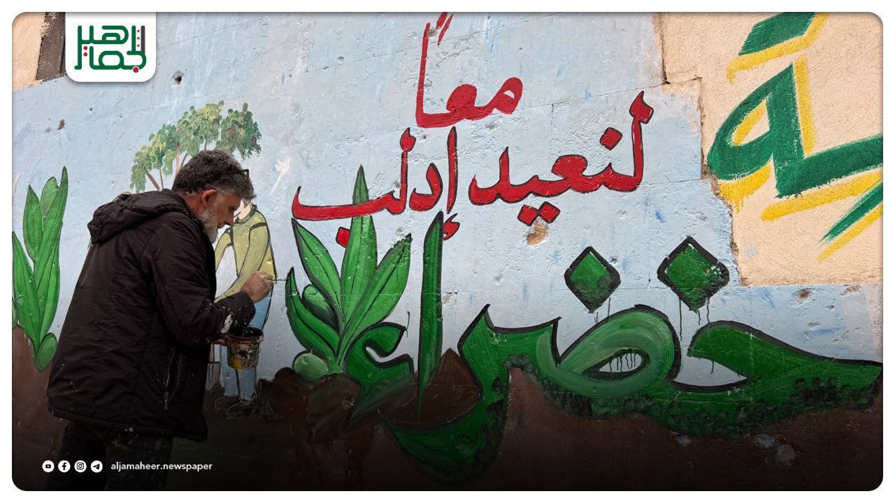 شارك عدد من الفنانين المحليين في رسم جداريات وتصاميم فنية في مدينة سراقب في ريف محافظة إدلب، تبرز أهمية الأشجار والطبيعة ودور الإنسان في حماية البيئة، ضمن حملة «معاً لنعيد إدلب خضراء»، أحدث الأخبار On نوفمبر 27, 2025 Share Share FacebookTwitterGoogle+ReddItWhatsAppPinterestالبريد الإلكتروني