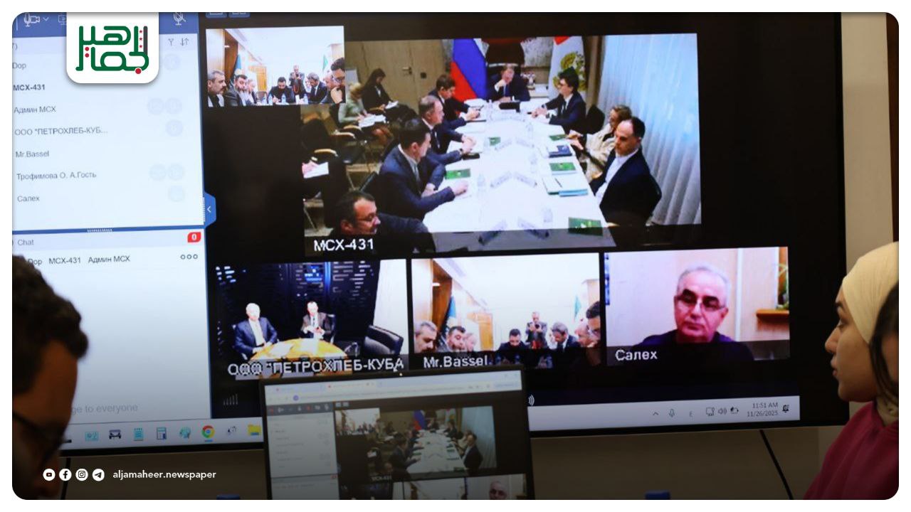 بحث نائب وزير الزراعة باسل السويدان مع الجانب الروسي، خلال لقاء عبر منصة الزوم، آفاق التعاون في المجال الزراعي بما يخدم مصلحة سورية ورؤيتها للبناء والنهوض.