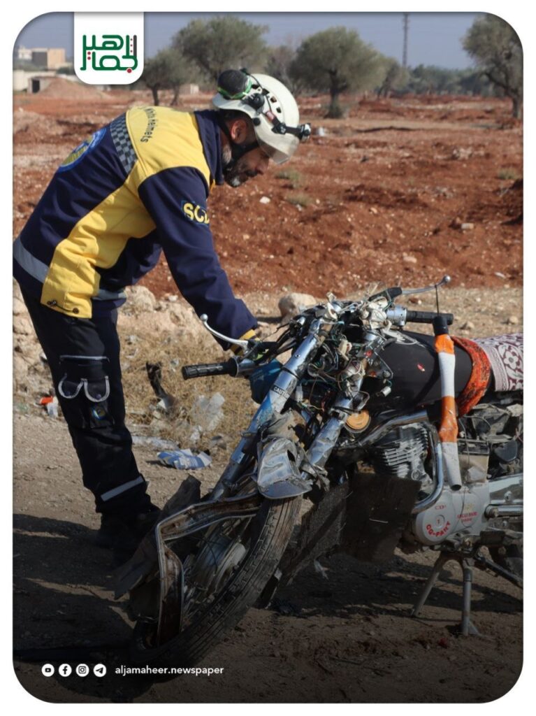 وفــ.ــاة شخص بحادث سير ناتج عن تصادم دراجة نارية بسيارة على طريق إدلب_أريحا جنوبي إدلب، اليوم الخميس ، تم نقل الشاب إلى المشفى من قبل صاحب السيارة وعملت فرقنا على تفقدت المكان وتأمينه محليات On نوفمبر 27, 2025 Share 🔔 اشترك بقناة التيليجرام: https://t.me/jamaheer Share FacebookTwitterGoogle+ReddItWhatsAppPinterestالبريد الإلكتروني