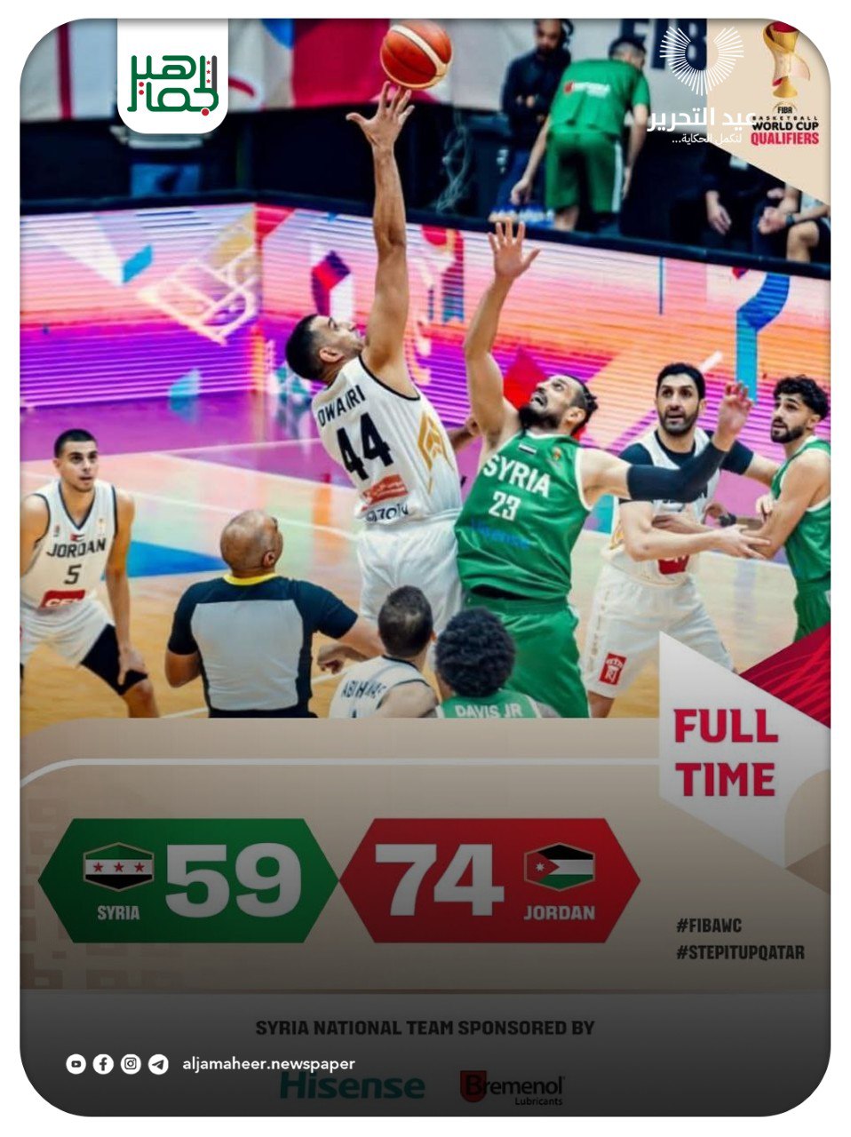 خسارة منتخبنا الوطني الأول لكرة السلة أمام نظيره المنتخب الأردني بنتيجة 74/ 59 في مباراته الافتتاحية ضمن التصفيات الآسيوية المؤهلة لبطولة العالم قطر 2027. أحدث الأخباررياضة On نوفمبر 27, 2025 Share Share FacebookTwitterGoogle+ReddItWhatsAppPinterestالبريد الإلكتروني