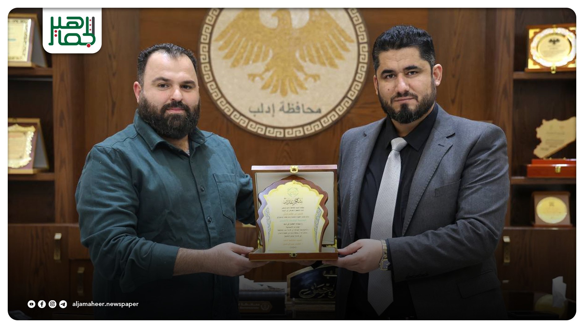 قدّم محافظ إدلب محمد عبد الرحمن درع شكر وتقدير للمدير السابق لمديرية الشؤون الاجتماعية والعمل في محافظة إدلب، الأستاذ فراس كردوش، وذلك تقديراً للجهود التي بذلها خلال فترة عمله وما قدّمه من إسهامات في تطوير وتنظيم العمل الاجتماعي والإنساني في المحافظة.