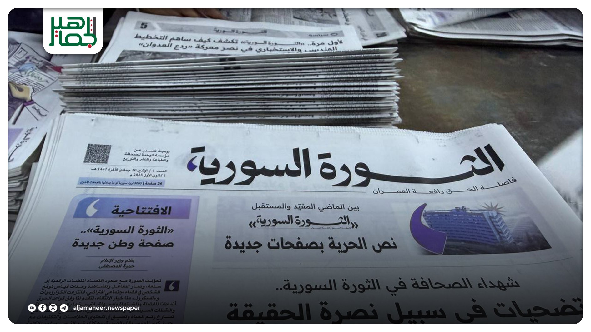 لقطات من طباعة العدد الأول لصحيفة الثورة السورية منوعات On ديسمبر 1, 2025 Share #صحيفة_الجماهير Share FacebookTwitterGoogle+ReddItWhatsAppPinterestالبريد الإلكتروني