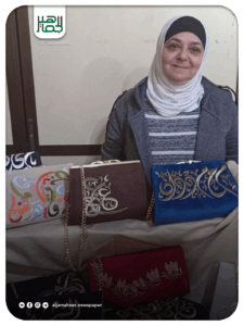 من بين المشاركات، قدّمت غفران جدوع أعمالها في التطريز الآلي على الحقائب والألبسة والشرقيات، ساعيةً للدمج بين التراث والعصرنة من خلال إدخال الخط العربي والخيط الفضي. وشددت جدوع على أهمية امتلاك المرأة لمهنة تمكنها من عمل خاص يحقق لها الاستقلال المادي.